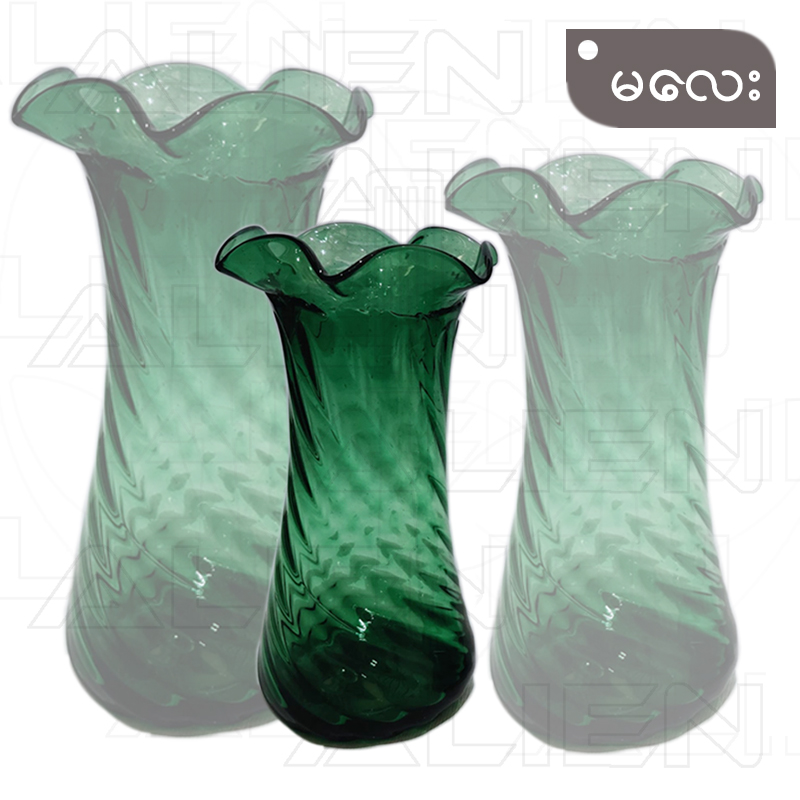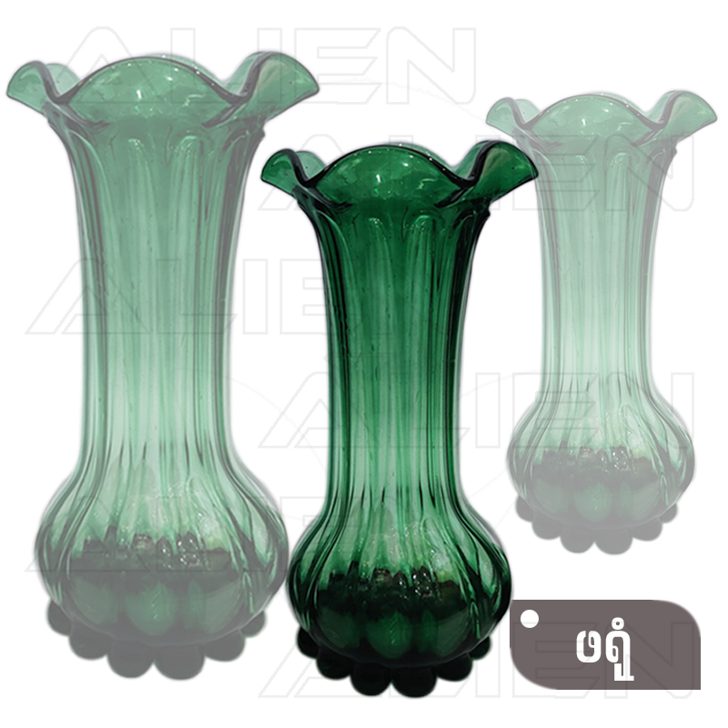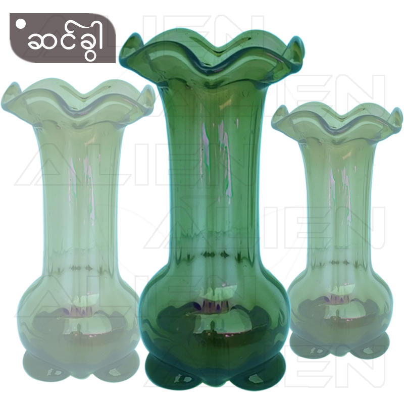 ဖန်စိမ်းပန်းအိုးကြီး ၊ လတ် ၊ သေး သုံးဆိုဒ်ရှိပါသည် ။